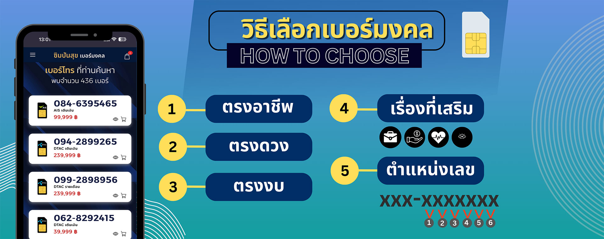 - ค้นหาเบอร์ที่เหมาะสมกับงบประมาณ